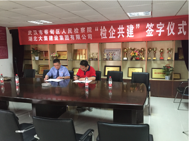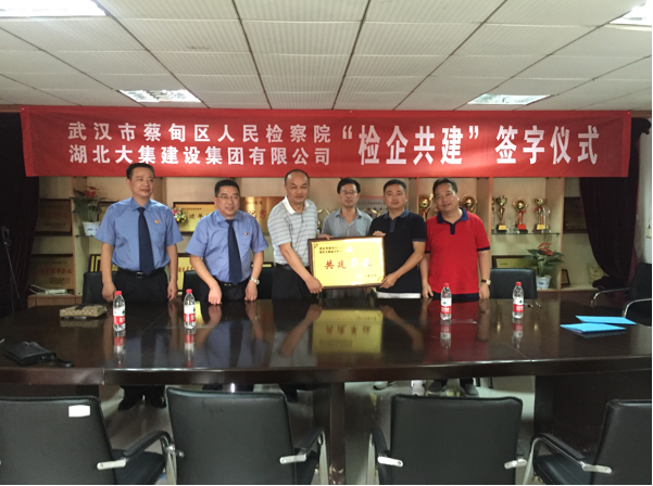 隨后武漢市蔡甸區(qū)人民檢察院與湖北大集建設(shè)集團有限公司在集團公司會議室舉行“檢企共建”簽約和授牌儀式。共同簽署了《檢企共建協(xié)議書》。集團公司董事長徐濤、總經(jīng)理徐遠征對蔡甸區(qū)檢察院給予企業(yè)的幫助和支持表示感謝,并號召公司全體員工要提高思想認識,在蔡甸區(qū)人民檢察院的指導(dǎo)下,認真開展預(yù)防職務(wù)犯罪工作,確保企業(yè)正常經(jīng)營活動的有序開展。