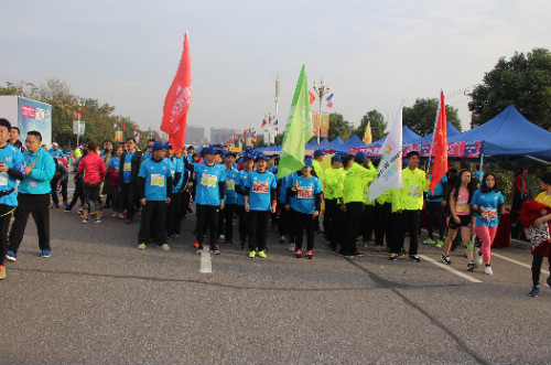 早上8點(diǎn)半,隨著一聲發(fā)令槍響,2016武漢后官湖半程馬拉松正式開賽!本次賽事共設(shè)兩項(xiàng)比賽,由2000名選手參加的21公里半馬跑和4000名選手參加的5公里健康跑組成的跑步大軍,共同圍繞著后官湖國家濕地公園,途徑風(fēng)光旖旎的原生態(tài)景觀,感受最清新爽朗的江城奔跑。在人山人海的跑步大軍里有一群身穿藍(lán)色戰(zhàn)服的團(tuán)隊(duì)——湖北大集建設(shè)集團(tuán)有限公司員工,他們手持企業(yè)司旗,步伐有力,活力四射的點(diǎn)綴在武漢第一的郊野綠道上,成為后官湖深秋最亮眼的風(fēng)景線!讓我們共同迎接這場盛大的賽事!