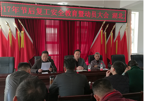 2月13日下午,湖北大集建設(shè)集團(tuán)公司召開2017年節(jié)后復(fù)工安全教育暨動(dòng)員會(huì),本次會(huì)議由集團(tuán)公司副總經(jīng)理徐家富主持,集團(tuán)公司總經(jīng)理徐遠(yuǎn)征發(fā)表重要講話,聚盛置業(yè)陳兆華總經(jīng)理和全體員工出席本次會(huì)議。