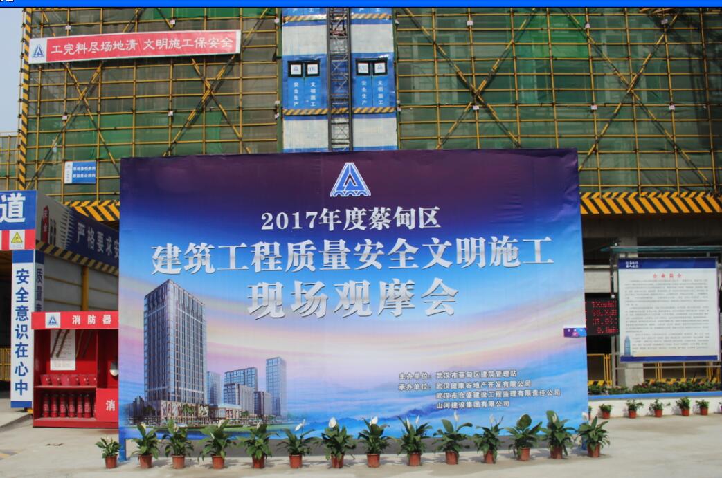 2017年5月10日,集團工程管理部帶領各項目經(jīng)理參加了蔡甸區(qū)建筑管理站主辦的2017年度蔡甸區(qū)建筑工程質量安全文明施工現(xiàn)場觀摩會,共同參觀學習了山河集團有限公司承建的“中國.武漢健康谷”商業(yè)街4#樓項目。該項目榮獲2016年度建筑工程優(yōu)質“楚天杯”,無論是工程質量管理還是安全文明生產(chǎn),現(xiàn)場高標準的施工要求,規(guī)范化的施工操作,全面的安全防護,嚴謹?shù)谋O(jiān)察管理,無不為我們展示了一頓讓人嘆為觀止的饕餮盛宴,也讓我們在這次觀摩學習中感觸良多,收益頗豐。