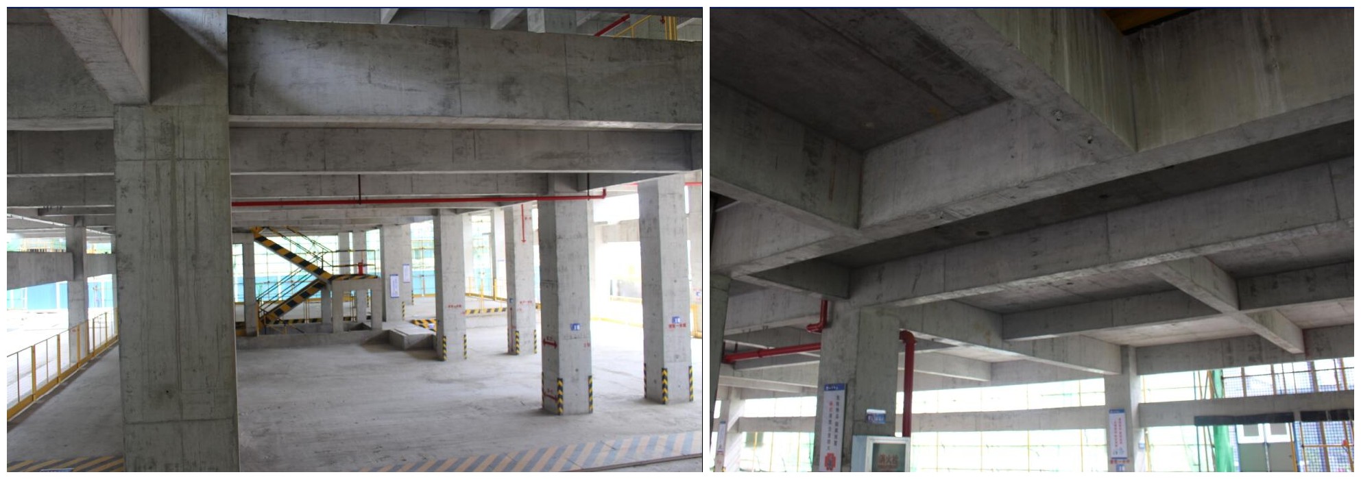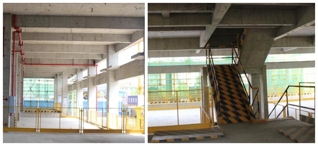 主體結構梁、柱、樓、地面:1、梁柱陰陽角順直、方正;2、模版結頭平整,無偏模、跑?,F(xiàn)象;3、混凝土表面平整、光滑、五蜂窩麻面,五亂跟現(xiàn)象,感觀度很好;4、樓、地面平整密實,紋路清晰,無高低、凹凸不平現(xiàn)象。