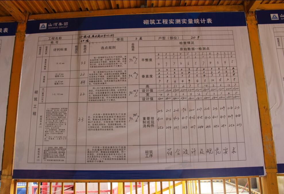 2.成品監(jiān)管展示:定期檢測,實測實量數(shù)據(jù)上墻,嚴格按照標準要求執(zhí)行;