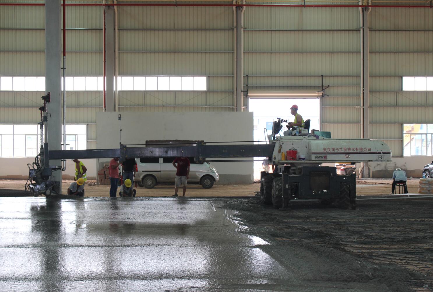 億和中建鋼構(gòu)項目率先在地平混凝土現(xiàn)場引進激光振坪儀和磨光機,不僅在效率上大大縮短了施工時間,降低了人工成本,更是在效果上達到了比人工更為精準的技藝——混凝土的平整度、密實度、觀感度以及面層金剛砂顆粒分布度優(yōu)良,高低差控制在3~4mm。
