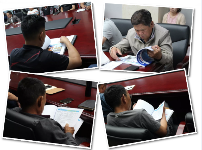 工程部為每個項目部發(fā)放4月份質(zhì)量安全檢查書冊,項目負責人認真閱讀