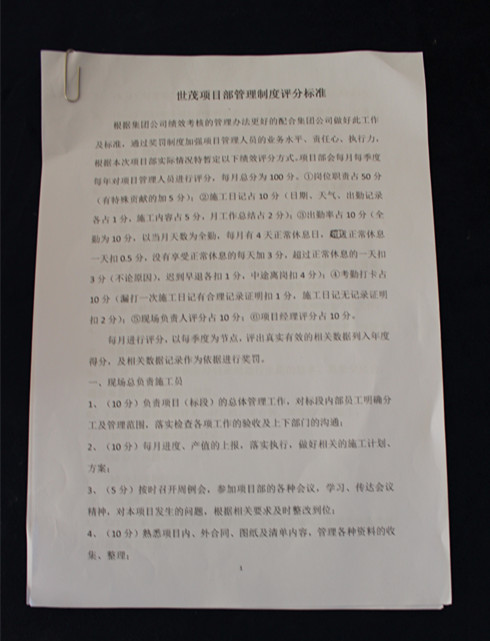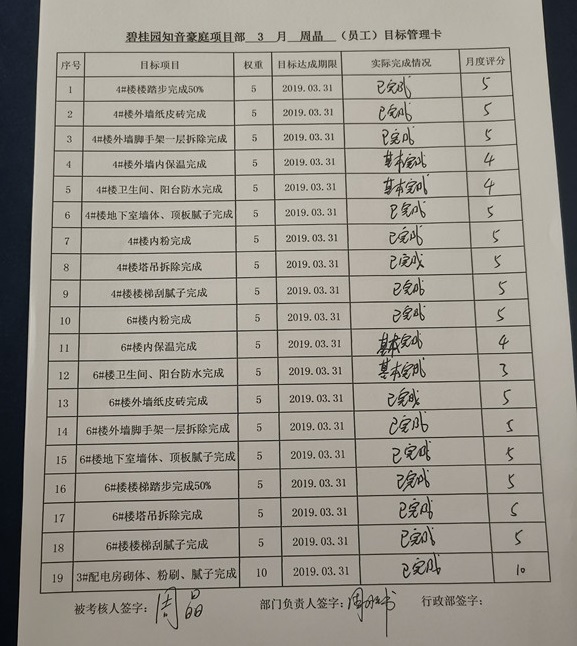 目前,集團實施的項目績效考核制度是今年2月份修訂完善后發(fā)布的,該制度新增了垂直管理環(huán)節(jié),將項目部相關崗位納入集團統(tǒng)一管理,同時通過《員工目標管理卡》將項目月度目標分解到每位項目人員頭上,使項目人員更加深刻的明確自身崗位職責,從而真正實現(xiàn)目標責任到人。