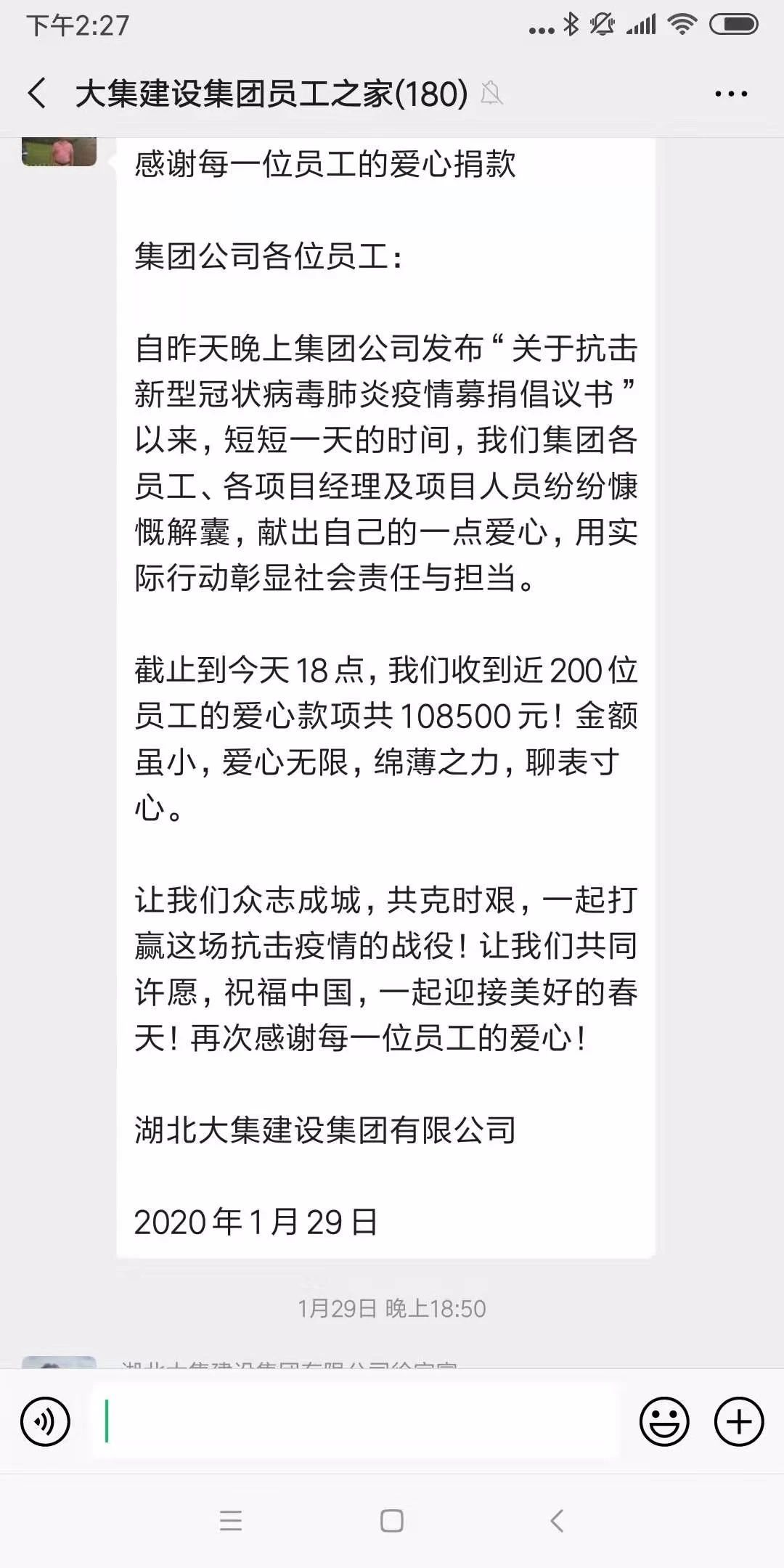 疫情防控,大愛無疆】眾志成城共同抗疫,湖北大集建設(shè)集團在行動!
