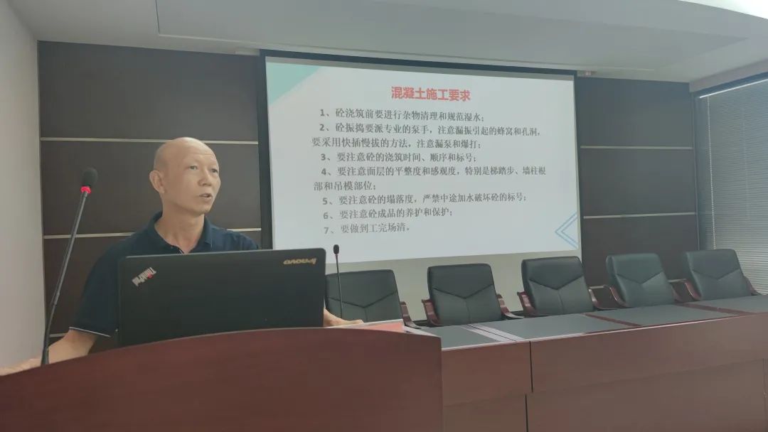 緊接著,工程部安全主管秦春波表明安全生產(chǎn)的重要性并進(jìn)行了詳細(xì)說(shuō)明,提出了安全第一、強(qiáng)化意識(shí)、教育培訓(xùn)、預(yù)防為主、防治結(jié)合的安全施工理念,著重講述細(xì)微的安全隱患,讓各位項(xiàng)目工作人員引起重視。