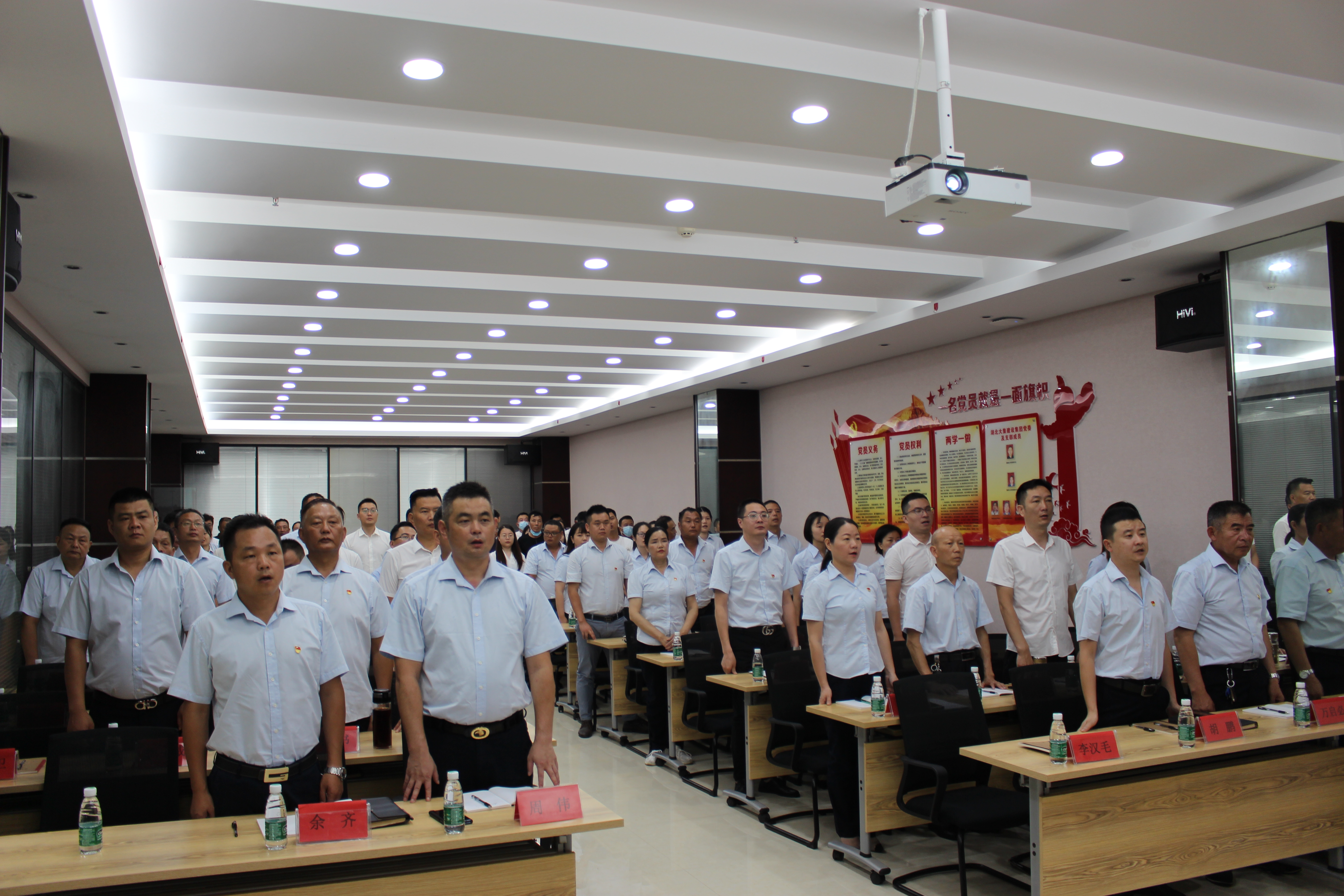 上午8:30,總結(jié)表彰大會(huì)在莊嚴(yán)的國(guó)歌聲中開(kāi)幕。集團(tuán)黨委副書(shū)記徐家富同志帶領(lǐng)全體與會(huì)黨員重溫入黨誓詞,錚錚誓言響徹會(huì)議室,共同表達(dá)了不忘初心,牢記使命,永遠(yuǎn)奮斗的堅(jiān)定決心。