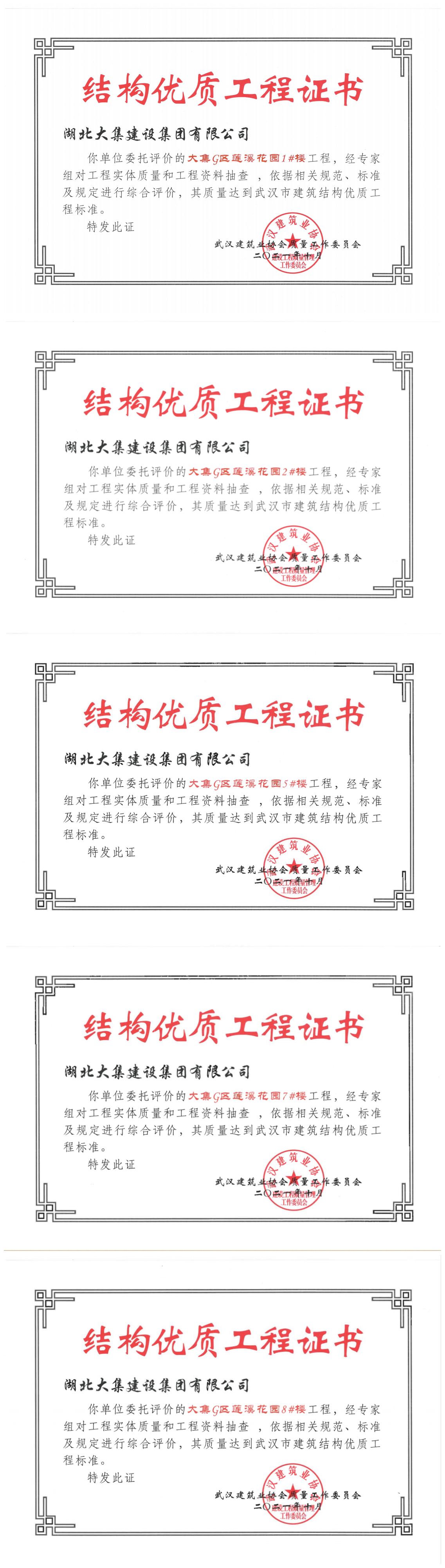 近日,由湖北大集建設(shè)集團承建的大集G區(qū)蓮溪花園項目1#2#、5#、7#、8#樓榮獲“武漢市建筑結(jié)構(gòu)優(yōu)質(zhì)工程”榮譽。