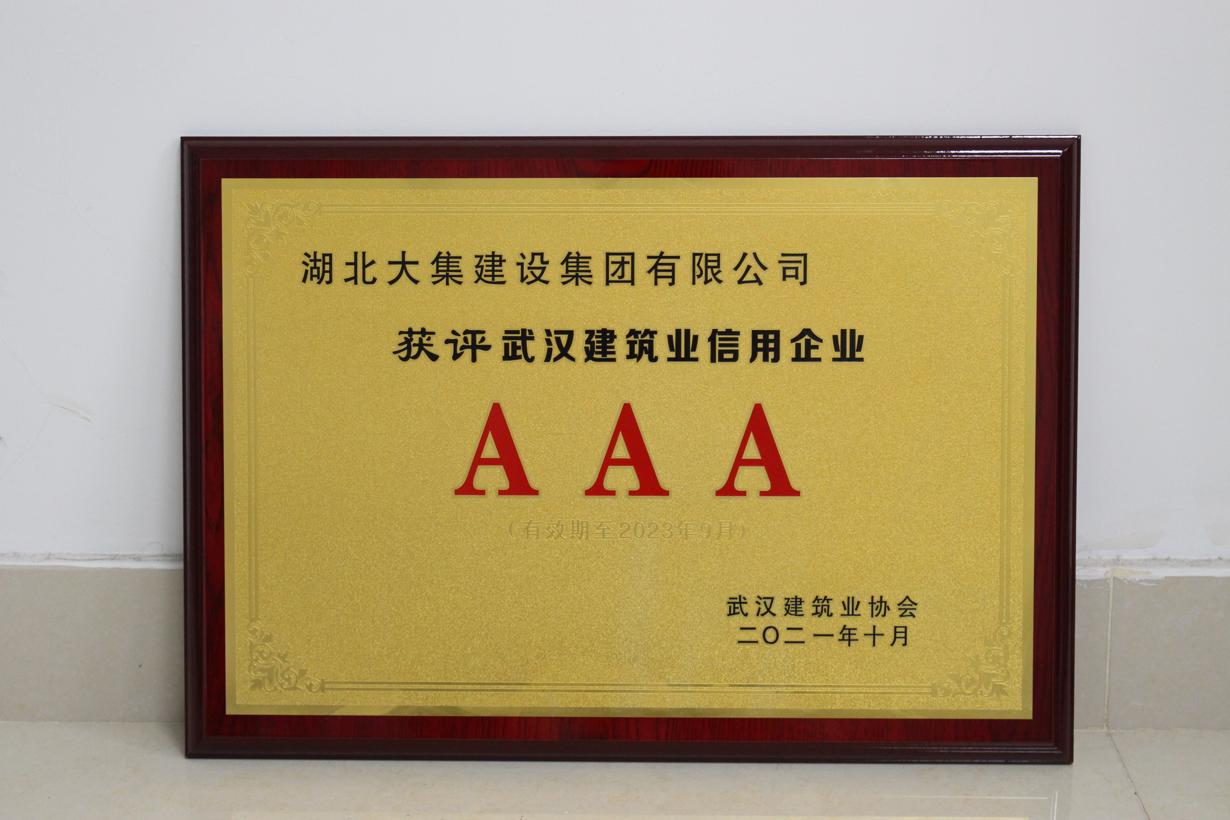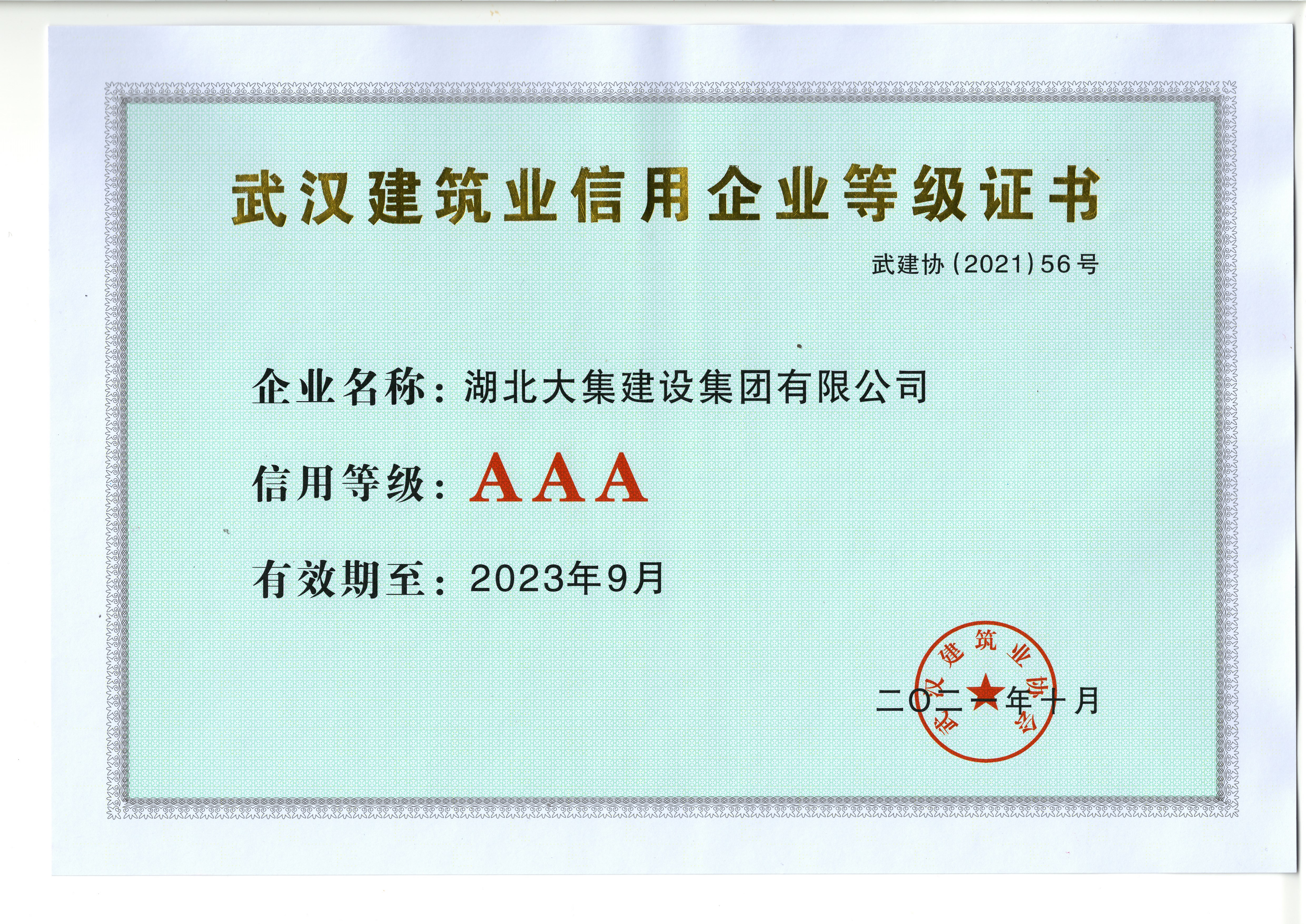 喜訊!湖北大集建設(shè)集團(tuán)再次獲評“武漢建筑業(yè)AAA信用企業(yè)”
