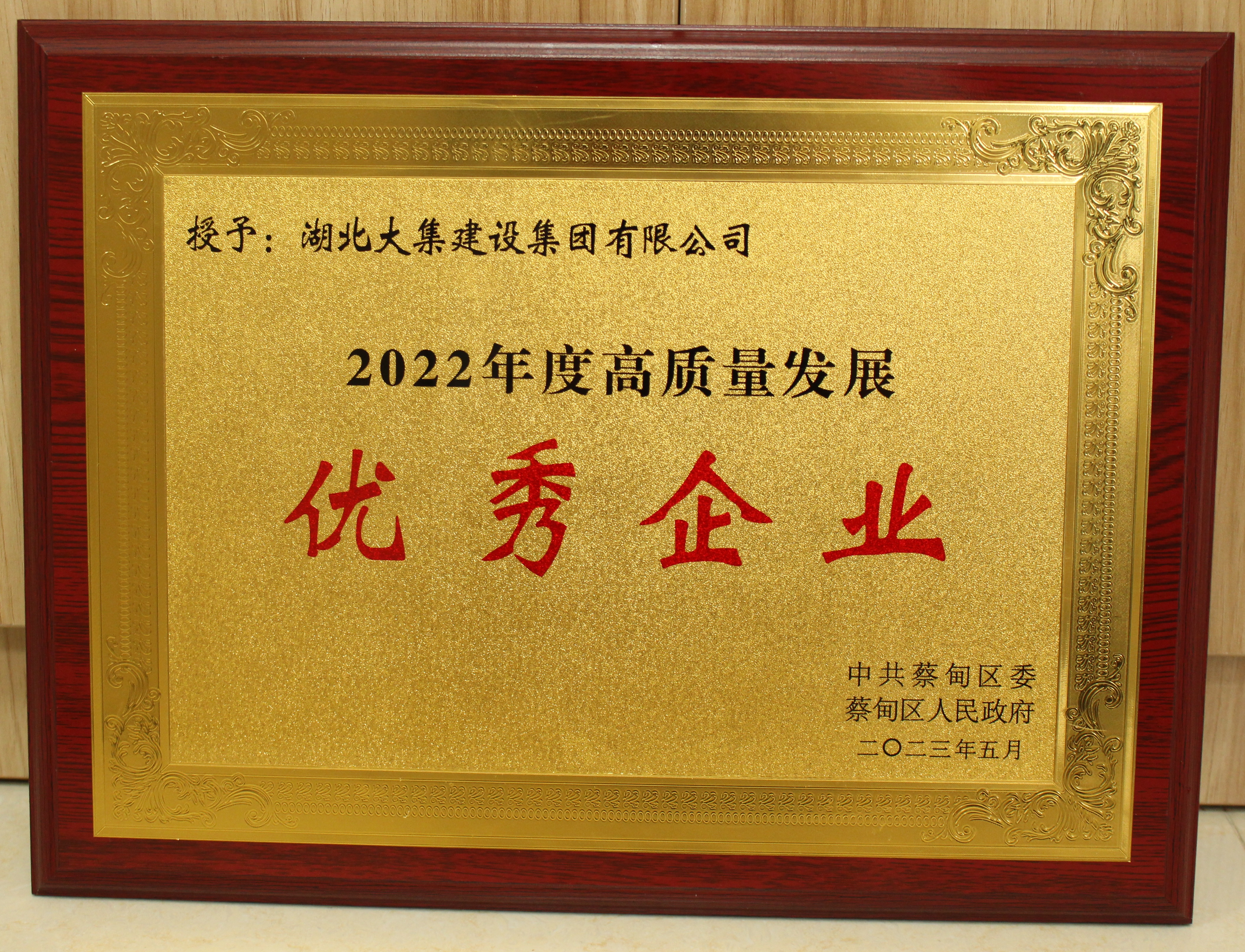 5月31日上午,中共蔡甸區(qū)委、蔡甸區(qū)人民政府組織召開了“蔡甸區(qū)學(xué)習大灣區(qū)經(jīng)驗推動高質(zhì)量發(fā)展大會”。大會表揚了一批突出貢獻企業(yè)和優(yōu)秀企業(yè),湖北大集建設(shè)集團有限公司榮獲“2022年度高質(zhì)量發(fā)展優(yōu)秀企業(yè)”榮譽稱號。