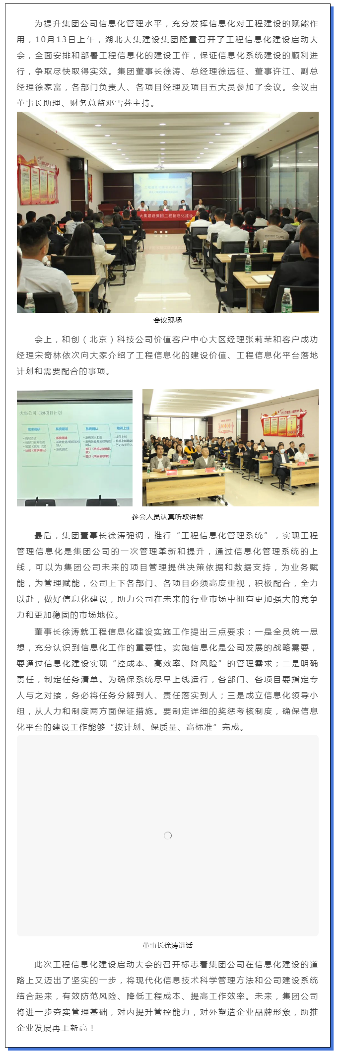 開啟信息化建設(shè) 實現(xiàn)精細(xì)化管理|湖北大集建設(shè)集團(tuán)工程信息化建設(shè)啟動大會順利召開