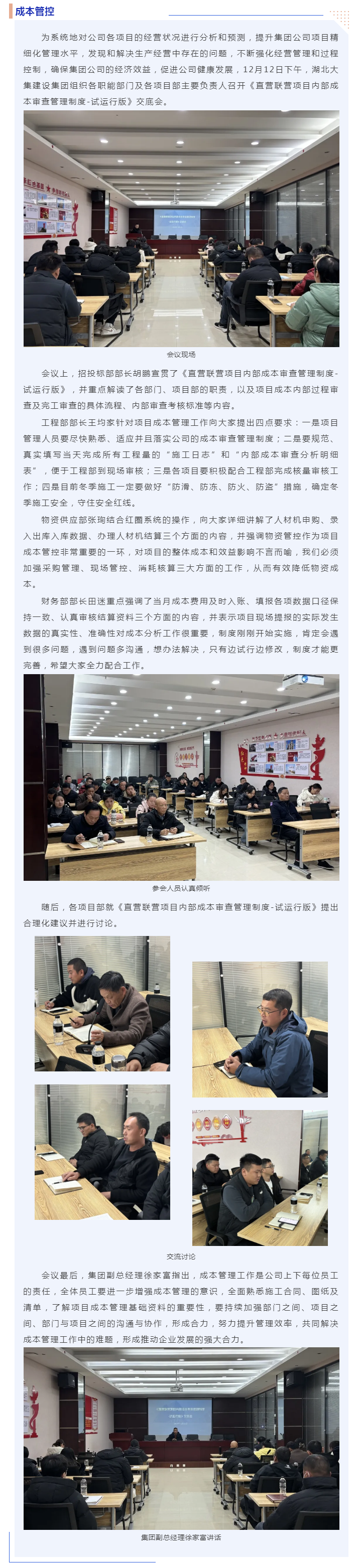 集團(tuán)公司召開項(xiàng)目內(nèi)部成本審查管理制度交底會