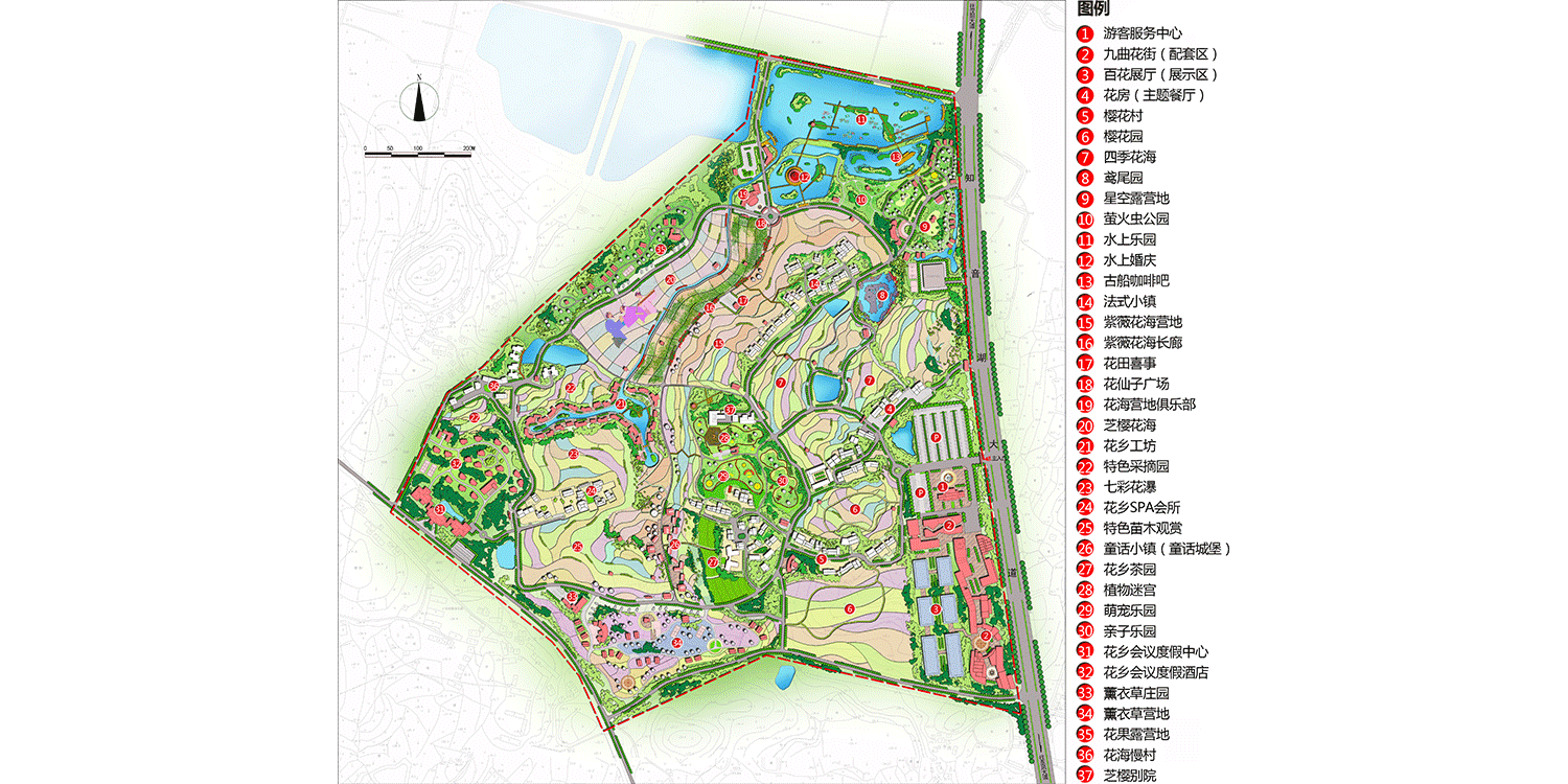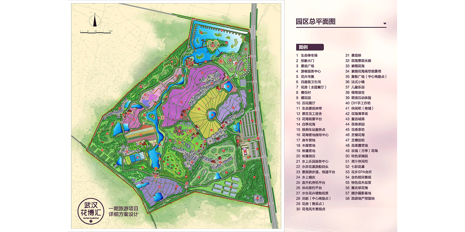 武漢花博匯總投資50億元,總規(guī)劃面積4800畝,邀請國際頂尖設(shè)計團隊擔綱設(shè)計,以“村-田-林-溪-塘”場地肌理為基礎(chǔ),以創(chuàng)意型花海景觀打造為主題,竭力打造集花卉旅游觀光、文化傳承交流、創(chuàng)意農(nóng)業(yè)體驗、田園養(yǎng)生度假、親水休閑游樂、美麗鄉(xiāng)村體驗、花卉集中展銷等諸多功能于一體的全國性精品休閑度假綜合體,滿足城市人群回歸自然、城郊休憩、體驗野趣、養(yǎng)生度假等極致追求。