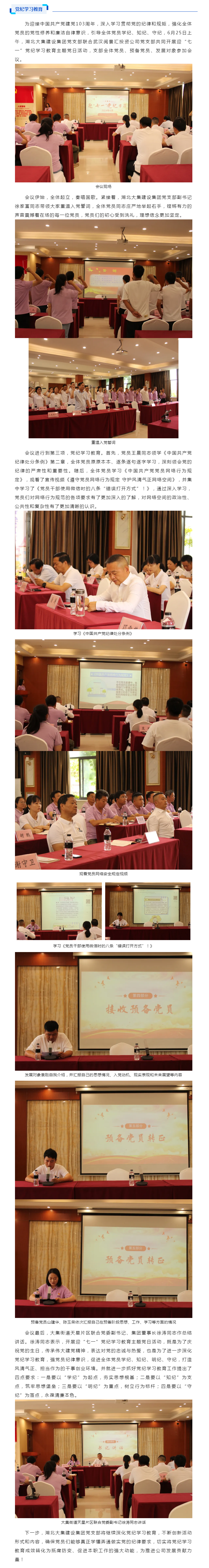學(xué)黨紀(jì) 明規(guī)矩 守初心 促發(fā)展——湖北大集建設(shè)集團(tuán)開展迎“七一”黨紀(jì)學(xué)習(xí)教育主題黨日活動(dòng)