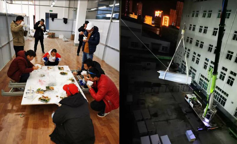 張?bào)艺f,方艙建設(shè)期間他學(xué)到了很多,更是看到了兩個(gè)人,一個(gè)是董事長,所有細(xì)節(jié)親力親為,現(xiàn)場作業(yè)面一天總要轉(zhuǎn)好幾遍,他都親自動手搬運(yùn),積極主動帶領(lǐng)大家一路向前,吃飯時(shí)也與大家一起因陋就簡,席地而坐,把奉獻(xiàn)精神做到了極致;另一個(gè)是周勝書周總,他的責(zé)任感值得大家學(xué)習(xí),在最累的時(shí)候,大家還會歇一下,可周總總是一個(gè)人沖在前面,最早一個(gè)來,最后一個(gè)走,包括材料組織,購買,搬運(yùn),所有人的生活,現(xiàn)場的衛(wèi)生,所有收尾工作等等,所有的細(xì)節(jié)都考慮的十分全面,周總是真的把責(zé)任感做到極致的人!同時(shí),他也很感激團(tuán)隊(duì)中每一個(gè)人,因?yàn)楣と藰I(yè)務(wù)不熟練,很多材料又難以采買,團(tuán)隊(duì)中負(fù)責(zé)采購的周鋒要跑遍很多市場才能采購到足夠的材料,真的非常辛苦,但好在最終,所有人的積極配合和共同努力讓任務(wù)得以圓滿完成,他說,那一刻他自己都不敢相信,真的只剩下激動!所以這場方艙建設(shè),對他來說收獲更多,因?yàn)檫@場經(jīng)歷他有了更多的責(zé)任感和奉獻(xiàn)精神,也親眼見證了團(tuán)結(jié)的力量!