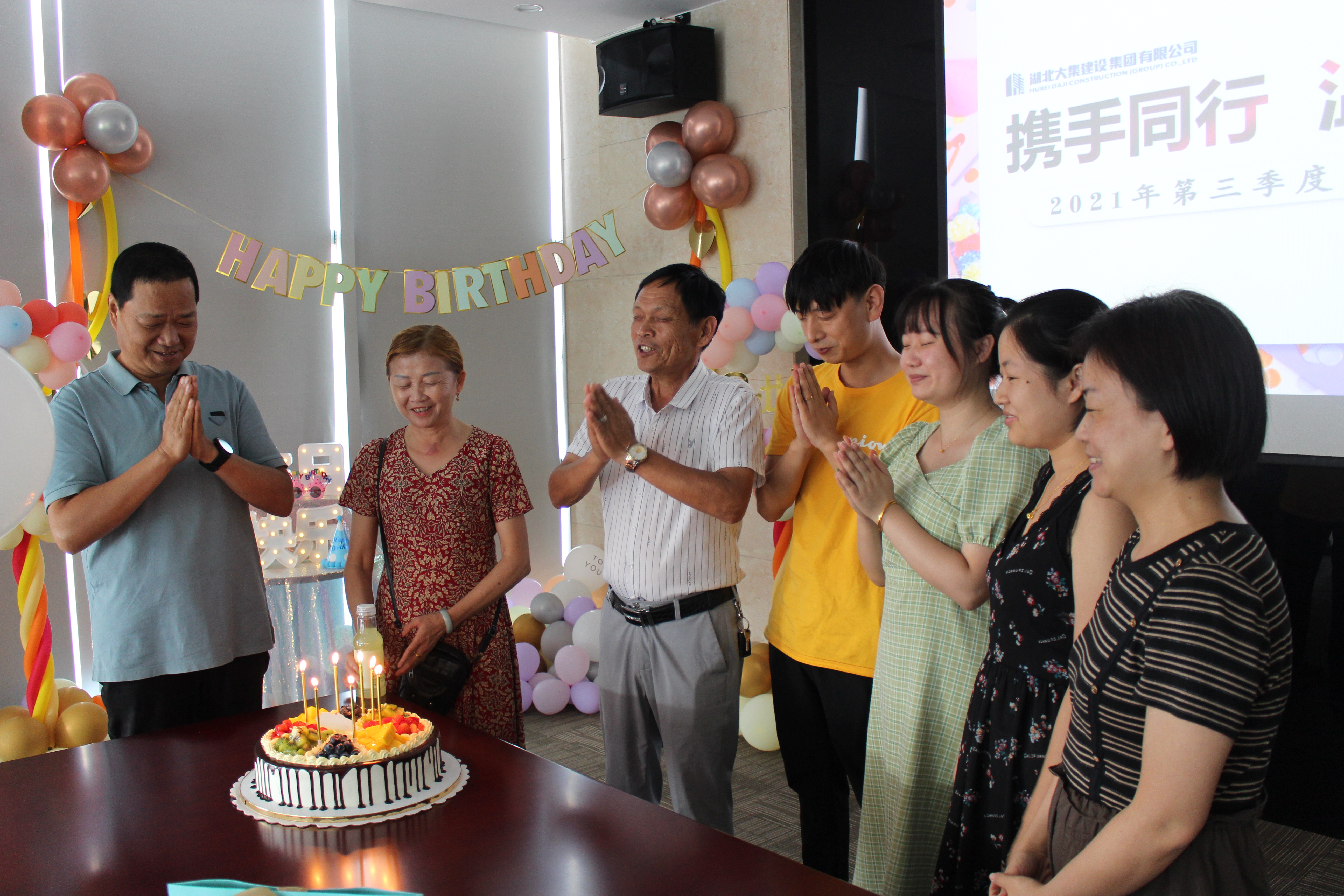 九月,秋高氣爽,碩果累累,秋日的微風(fēng)和陽光是如此的美好。成長不期而遇,生日如約而至。在精心布置的會議室里,輕快的音樂聲相隨,大屏幕上播放著美好的生日祝福,集團(tuán)公司為第三季度生日的員工舉辦了小小的生日Party。氣球、生日蛋糕、禮物、精致月餅、琳瑯滿目的零食飲品,每一處溫馨的細(xì)節(jié),都承載著公司對員工的愛與關(guān)懷。