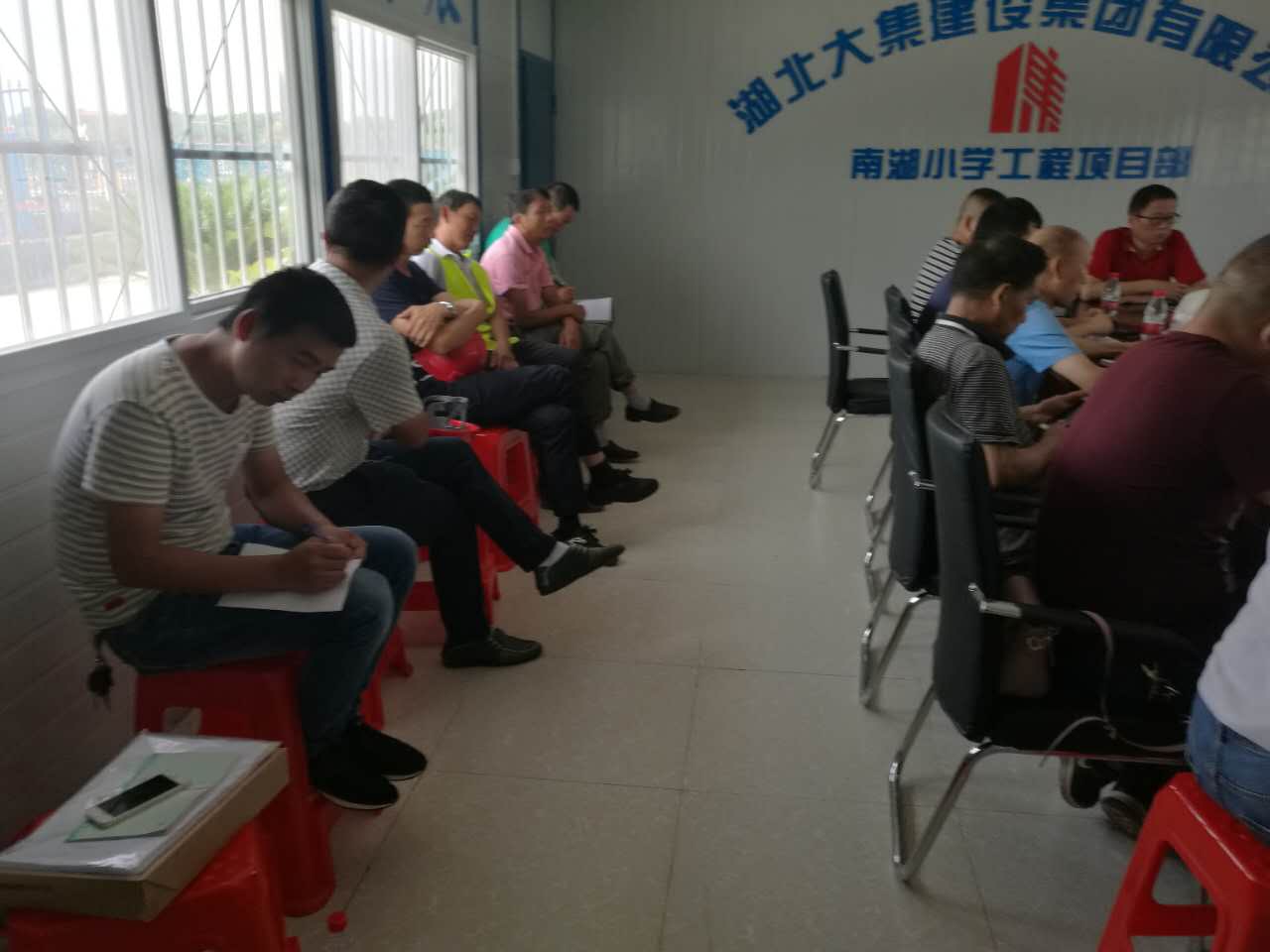 會議開始, 由南湖小學項目施工員介紹了該項目的主要情況及進度,并表達了南湖小學項目創(chuàng)杯爭優(yōu)的決心,確保楚天杯,爭創(chuàng)魯班獎,并對施工工藝細節(jié)和各個操作班組制定了具體規(guī)范和標準。