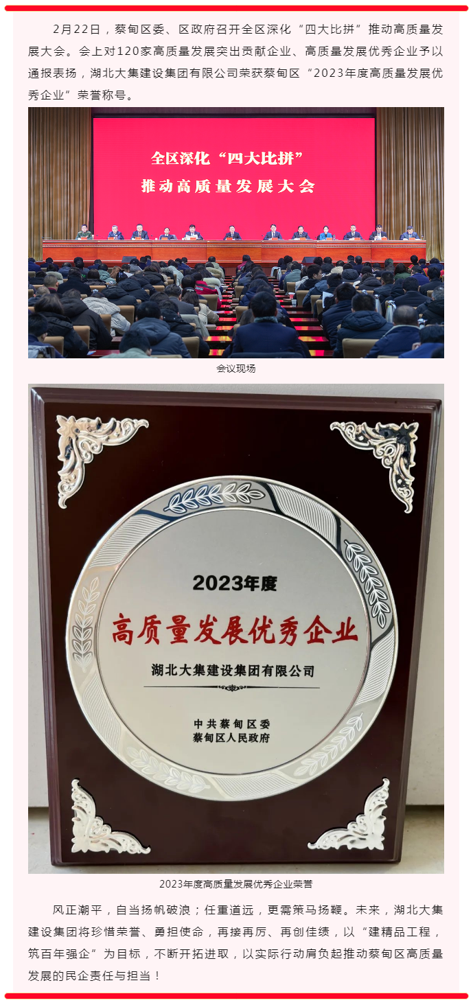 開門紅|湖北大集建設(shè)集團榮獲蔡甸區(qū)“2023年度高質(zhì)量發(fā)展優(yōu)秀企業(yè)”榮譽