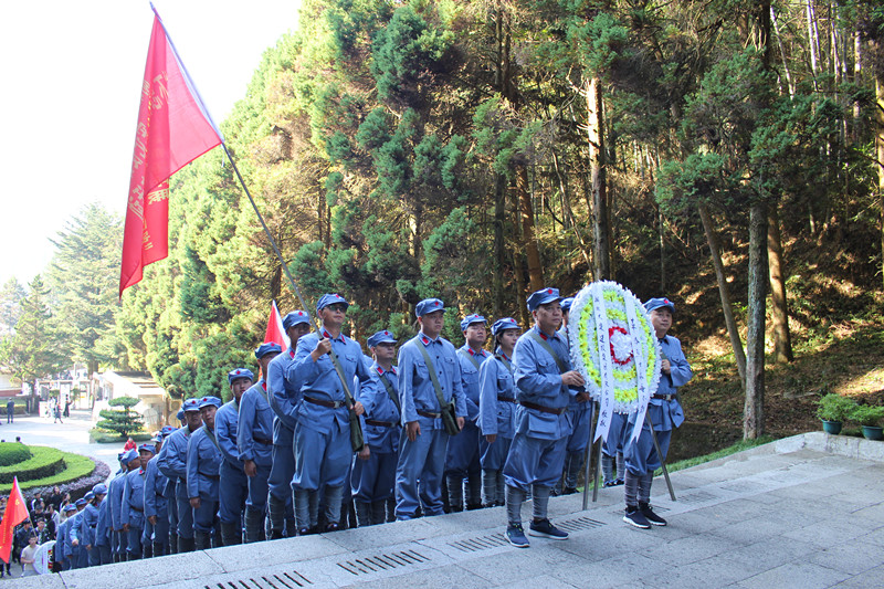 在井岡山革命烈士陵園,學(xué)員們懷著崇高的敬意向革命英烈敬獻(xiàn)花圈,肅立默哀,感悟先烈追求理想信念,不怕?tīng)奚某绺咂焚|(zhì)。