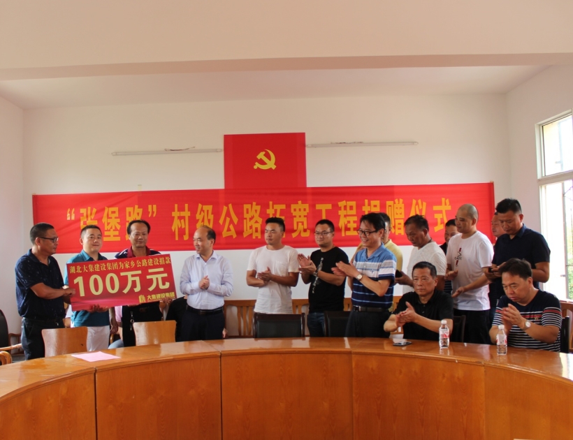 情系家鄉(xiāng)發(fā)展,勇?lián)鐣?huì)責(zé)任。7月26日,集團(tuán)董事長(zhǎng)徐濤、總經(jīng)理徐遠(yuǎn)征、副總經(jīng)理徐家富及各項(xiàng)目經(jīng)理來到蔡甸區(qū)大集街堡家咀村村委會(huì),為“張堡路”村級(jí)公路拓寬工程進(jìn)行捐贈(zèng),集團(tuán)董事長(zhǎng)徐濤代表湖北大集建設(shè)集團(tuán)為該工程捐款一百萬元。